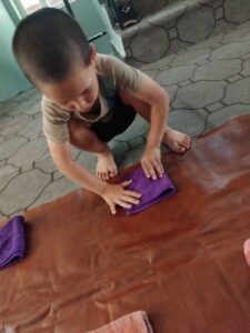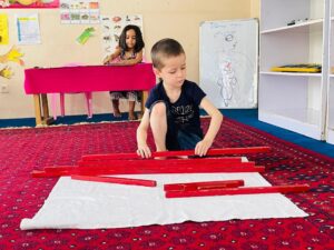 When I first entered the preschool, I saw a quiet and pleasant place. In the past, I thought that the place where children were cared for would be a relatively noisy place, but on the contrary, there was a special order in the preschool and each child was busy working with their hands in a friendly atmosphere and treated each other with respect. And the interesting thing was that there was no noise inside the classroom and each child was busy doing something with their hands, and this completely surprised me.